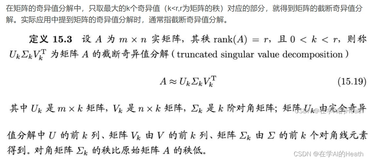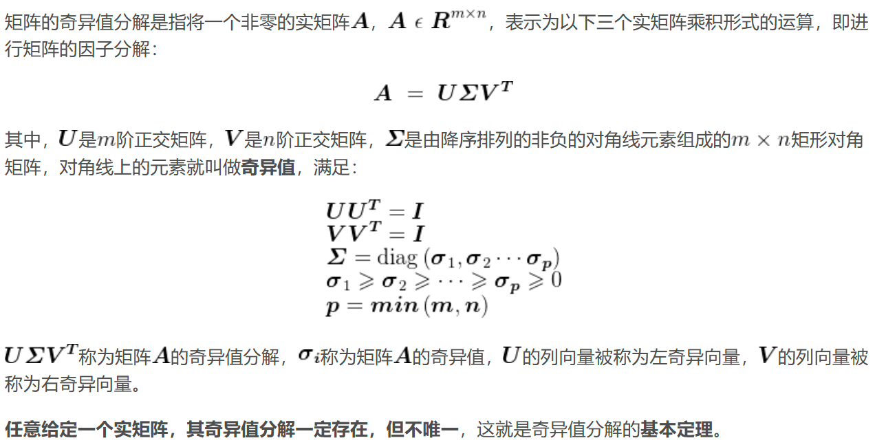 奇异值分解将任何给定矩阵分解为三个矩阵的乘积:一个正交的左奇异向量矩阵、一个对角的奇异值矩阵和一个正交的右奇异向量矩阵。将数据集的奇异值表征按重要性排列,舍弃不重要的特征向量,达到降维的目的,从而找出数据中的主成分。矩阵的奇异值分解可以看做是矩阵数据压缩的一种方法,即用因子分解的方式近似地表示原始矩阵,这种近似是在平方损失意义下的最优近似。它在应用如数据降维、信息检索、信号处理和图像压缩等领域具有重要作用。
